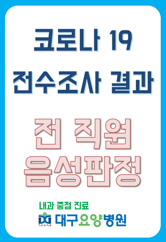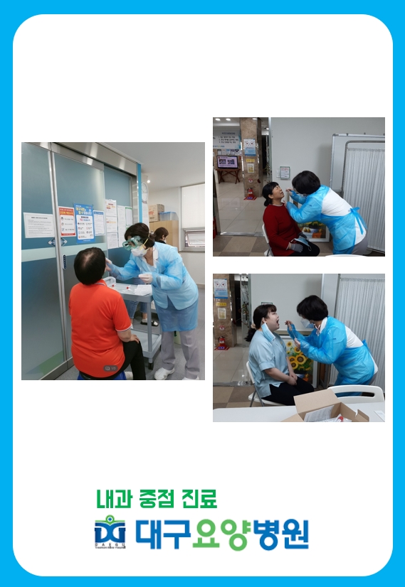 지난 10월 19일 월요일 대구요양병원 전 직원(간병사포함) 코로나10 전수검사를 실시하였습니다.